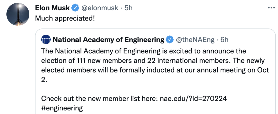谁知道,「狂人」马斯克也入选了,头衔+1,我们以后得称他「马院士」。