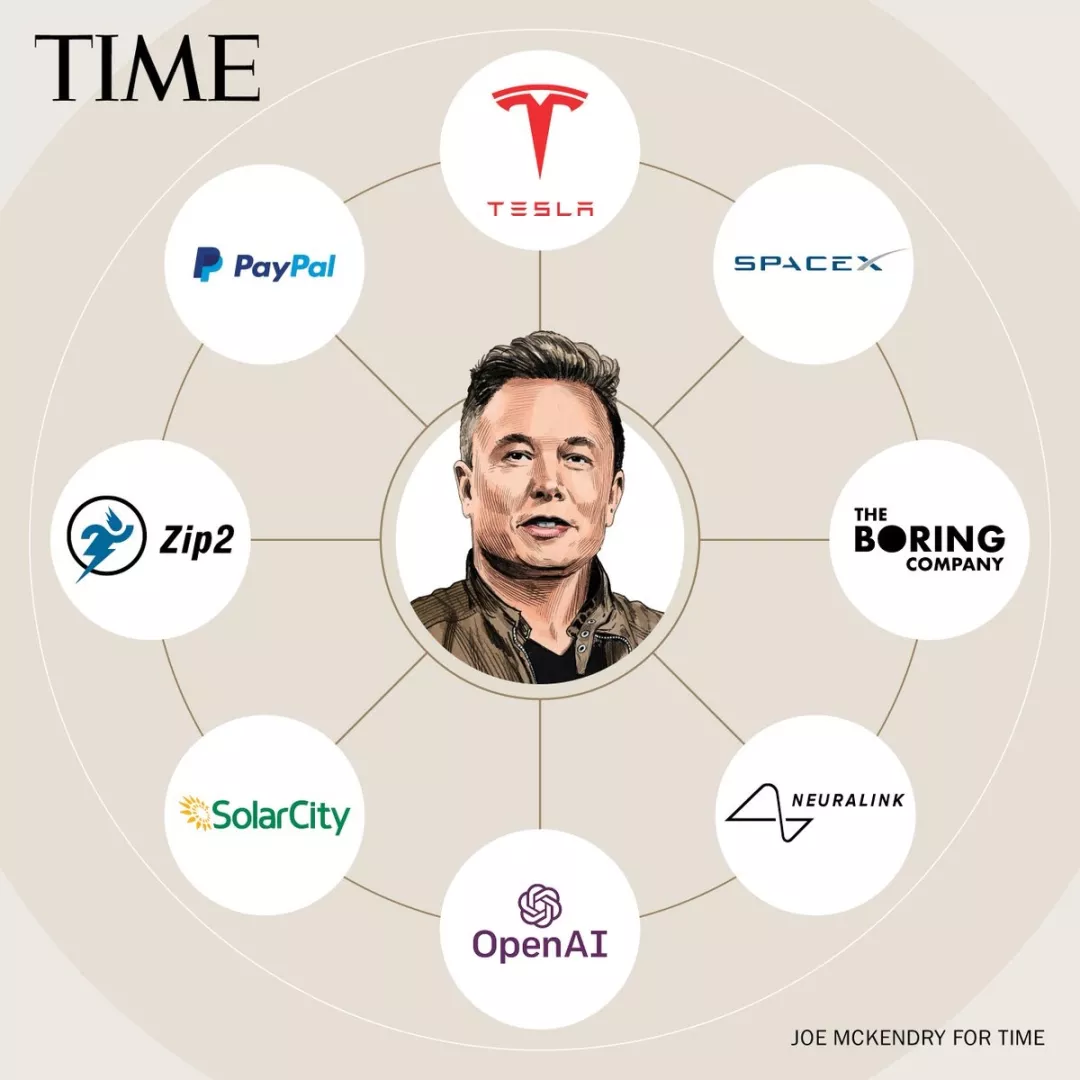 他旗下的公司包括特斯拉、火箭公司SpaceX、脑机接口公司Neuralink、地下隧道The Broing Company、太阳能发电公司SolarCity等。