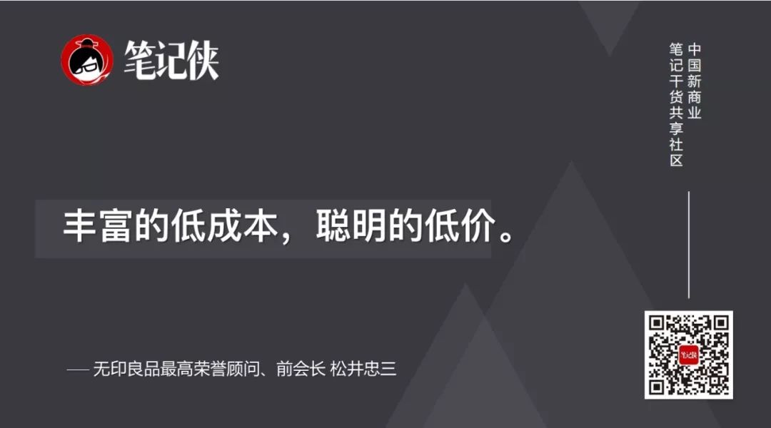 再结合对三大巨头公司在开发PB商品(自有品牌商品或中间商品牌商品)上陷入苦战的观察,促使无印良品跳出了常规思路,提出了自己的理念——“有理由的便宜”——以低三成的价格,为顾客提供与百货店同品质的商品,从此奠定了无印良品在商品开发上的根本思路。