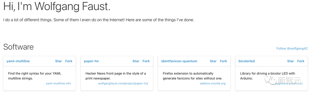 正如浮士德个人网站的Slogan「我做了很多不同的事情」所言,2011年至今,他在GitHub上共更新了111条作品,但账号目前也只有25个粉丝。一款名为「yaml-multiline」的开源软件,总计获得过216颗星和16次引用——这已是浮士德开发生涯的扛鼎之作。