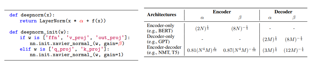 DEEPNET基于Transformer架构。和之前的vanilla Transformer相比,在每个子层上,都使用了研究人员最新研究的DEEPNORM,而不是Post-LN。