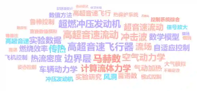 ,从 AMiner 数据库中查找出高超音速相关科研论文,生成技术热点词云图(如图 3 所示)。