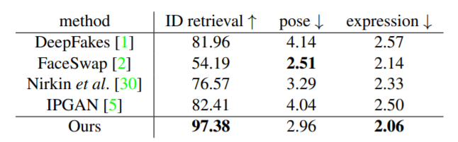架构的第二部分主要解决面部遮挡问题,这部分包括一个新的启发式错误确认细化网络(HEAR-Net)。训练后,可以以自监督的方式恢复图像的异常区域,无需任何手动注释。在新面部图像上进行的大量实验表明,与其他方法相比,本文模型生成的换脸图片结果不仅在感观上更真实、更具吸引力,而且还保留了原图像更多的特征。