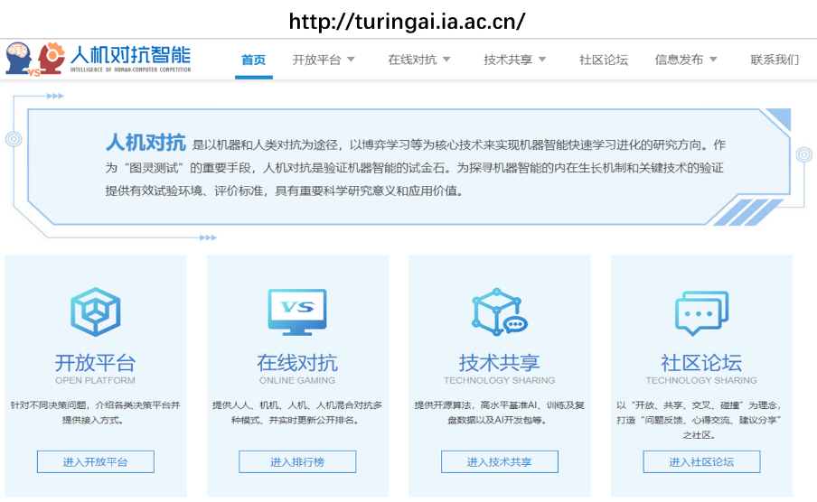 正确评估智能体的策略对于智能体的能力迭代具有至关重要的作用。研究者提出了一系列算法(如ELO、多维ELO等)实现智能体能力的准确刻画,但仍面临复杂非传递性策略的综合评估、协同智能体中单个智能体的能力评估、定性评估标准体系化等问题带来的挑战。近些年来,上述挑战促进了智能体评估开放平台的建设,例如,中科院自动化所开放了“图灵网”人机对抗智能门户网站(http://turingai.ia.ac.cn/),支持智能体机机对抗、人机对抗、人机混合对抗下多种指标评估评测(如图4)。