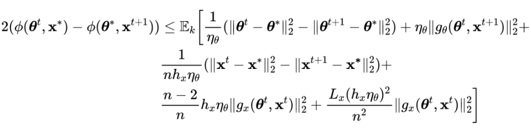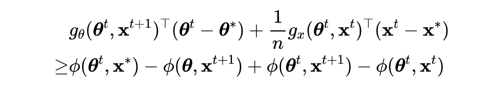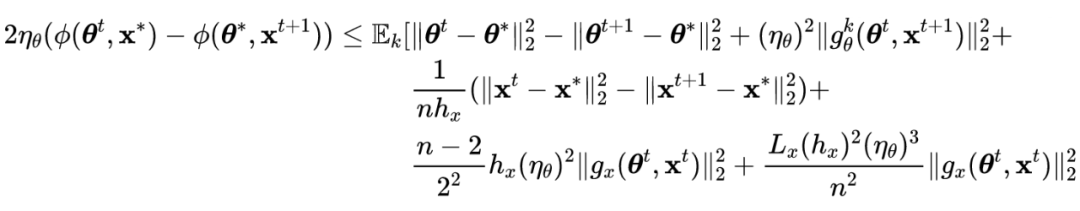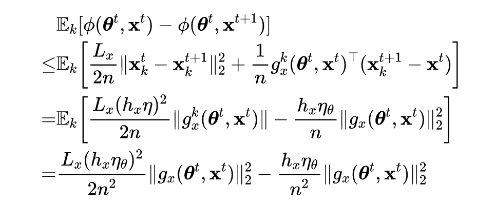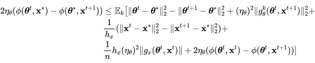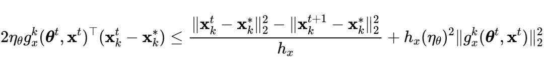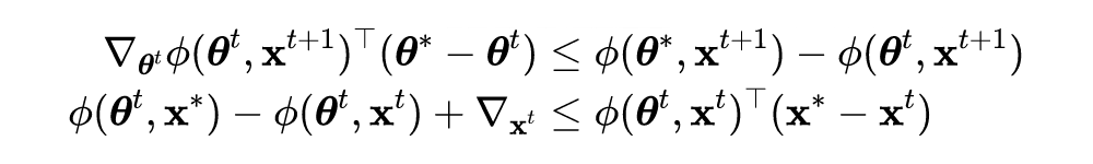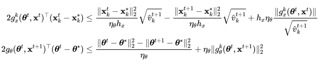 第一个和第三个不等式遵循最优性条件,第二个不等式使用 Jensen 不等式。在证明定理 1 和定理 2 时,有以下几个梯度符号: