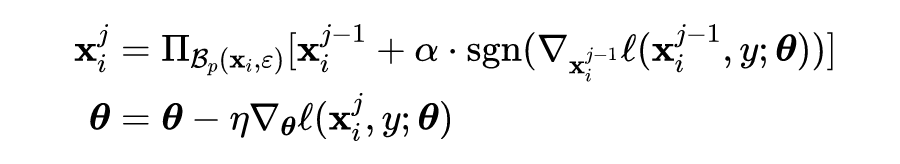 FreeAT 首先提出了一种快速对抗训练的方法,通过批量重复训练并同时优化模型参数和对抗扰动。YOPO 采用了类似的策略来优化对抗损失函数。后来,单步法被证明比 FreeAT 和 YOPO 更有效。如果仔细调整超参数,带随机启动的 FGSM(FGSM-RS)可用于一步生成对抗扰动,来训练鲁棒网络模型。ATTA 方法则是利用对抗样本的可迁移性,使用干净样本作为对抗样本的初始化,具体的优化形式如下所示:
