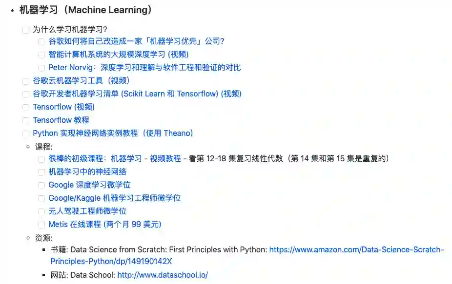 项目简直贴心到爆,不仅有教程、有代码,还有对应的在线视频,比如下面这个机器学习的相关资源,哦,对了这个项目还有多个语言版本,但是要学好编程英语还是要过关的。