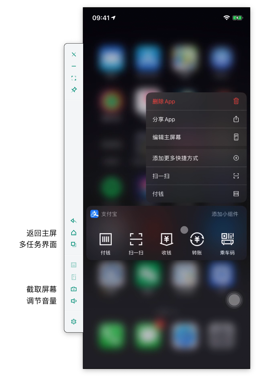 Wormhole 的使用体验还算不错,你可以通过虚拟鼠标触点实现滑动、点击等操作。理论上来说,你在 iPhone 上的所有操作应该都可以通过 Wormhole 完成,甚至包括触感触控。Wormhole 还在左侧功能区提供了几个快捷键,包括:快速切换到主屏幕、打开多任务管理、截取屏幕图像和调节音量大小。