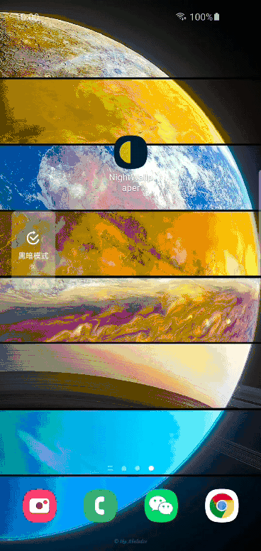 @Noah_Choi:在 Android 平台上,大部分设备会在夜间将壁纸亮度压暗,这样做虽然能为壁纸的展示效果起到一定优化作用,但同时壁纸也会变得灰蒙蒙一片。如果你的手机已经具备夜间模式功能,那么就可以使用 NightWallpaper 这个小工具实现昼/夜壁纸自动切换了。