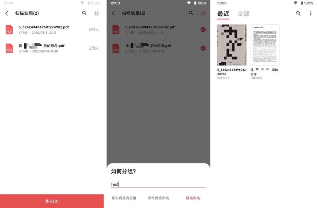 初次使用 YES PDF,我们可以手动搜索或是通过应用扫描来查找设备内的 PDF 文件,同时 YES PDF 还支持对导入的文件进行分组,方便日后管理。此外,YES PDF 会默认将用户近期阅读的文件展示在「最近」一栏中,进一步省去查找文件的时间。