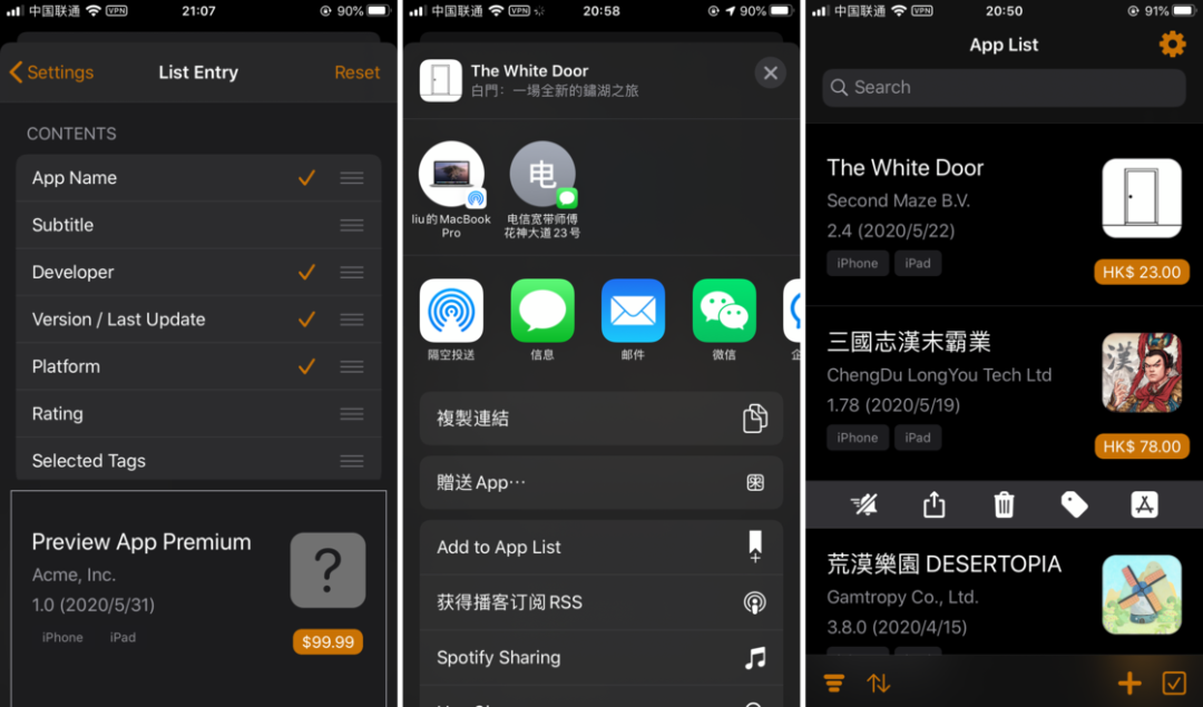 App List 用起来也非常简单,在 App Store 中找到想要购买的应用,然后点击分享选择「Add to App List」,将关注的应用添加到 App List 中不同的组中,这样你就可以在 App List 统一管理那些心愿单中的 App 了。而当有应用出现价格变动应用就会发送推送提示,这样限免和降价都不会错过。如果你经常购买付费的 App 不妨一试。