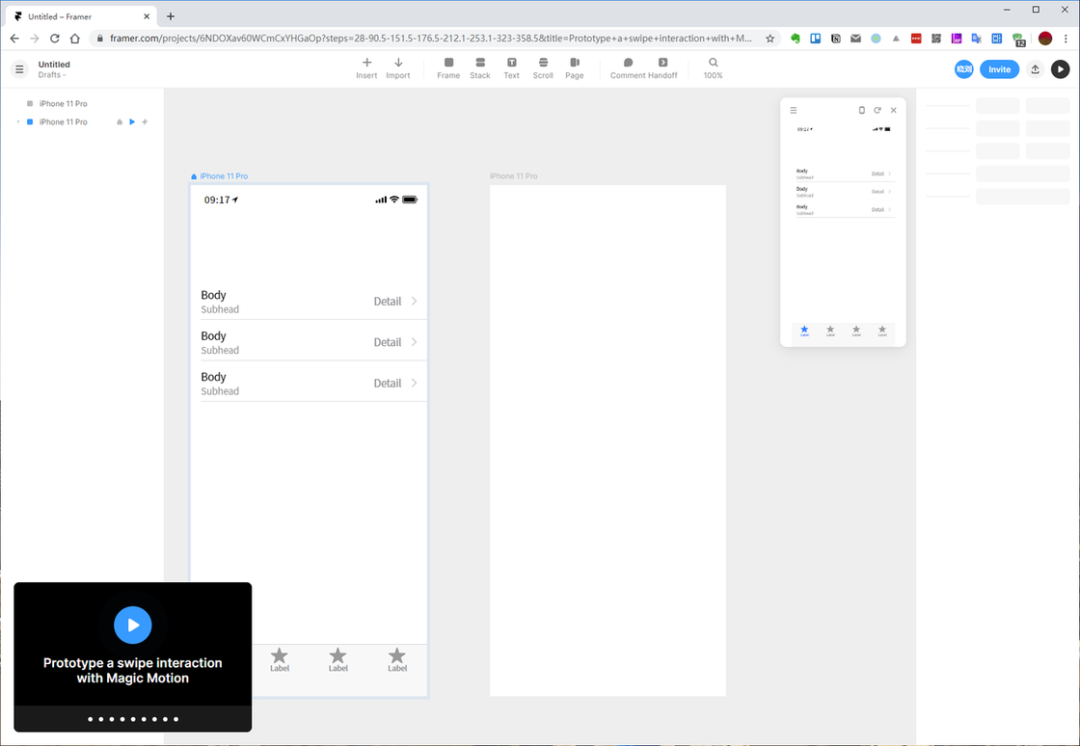 对于初学者而言,登录 Framer for Web 之后将会首先通过一系列在线入门视频进行一系列讲解,如果你使用过类似的软件那么会很容易上手;对于 PM 而言,这款工具最需要关注的点是能否将各个页面链接起来,成为一个可以展示的产品交互原型。