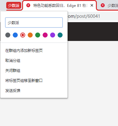 @化学心情下2:因为疫情的原因,Google 直接选择跳过 Chrome 82 而直接推出了 Chrome 83,因此原本在 Chrome 82 上发布的新功能也被合并在 Chrome 83 中一并推出,比如这个测试了相当长时间的标签页分组功能。