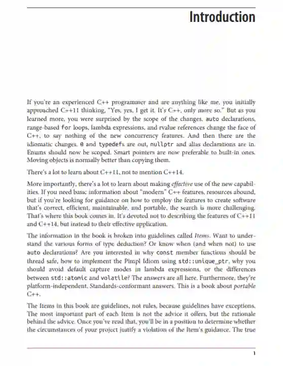 想要彻底理解C++11和C++14,不可止步于熟悉它们引入的语言特性(例如,auto型别推导、移动语义、lambda表达式以及并发支持)。挑战在于高效地运用这些特性——从而使你的软件具备正确性、高效率、可维护性和可移植性。这正是这本实用的图书意欲达成的定位。它描述的正是使用C++11和C++14——现代C++来撰写真正卓越的软件之道。