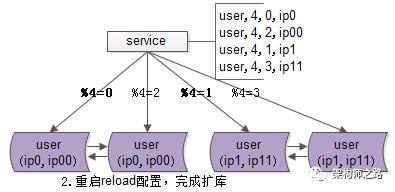 新的问题来了,分成n个库后,随着数据量的增加,要增加到2*n个库,数据库如何扩容,数据能否平滑迁移,能够持续对外提供服务,保证服务的可用性?