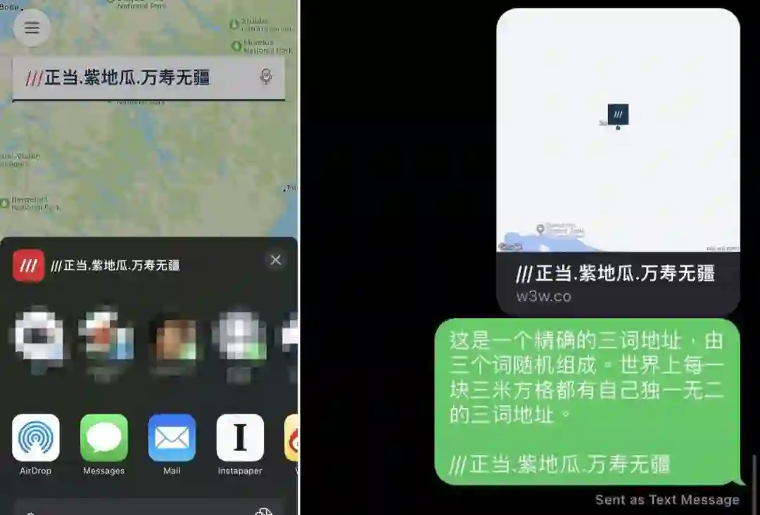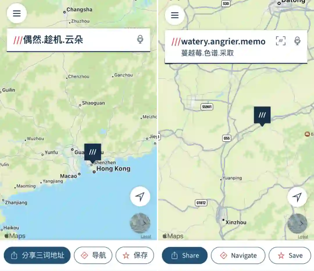 另外,虽然 what3words 无需联网即可使用,但前提是需要下载对应的 App 才能解析某三词所指向的具体位置。而且这个 App 并不提供导航服务,指路需要借助设备自带的 GPS 或者其他支持导航的地图软件,比如 Apple Maps 与 Google Maps。