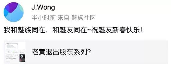 【黄章回应股权变更:我与魅族同在】1月19日消息,先前曾有消息称魅族创始人黄章退出魅族科技股东行列,随后,魅族官方正式回应此事,表示信息出错正沟通更改。19日,魅族科技创始人黄章也现身魅族社区与魅友互动,回应“股权变更”一事,黄章表示,我与魅族同在,与魅友同在。(IT之家)