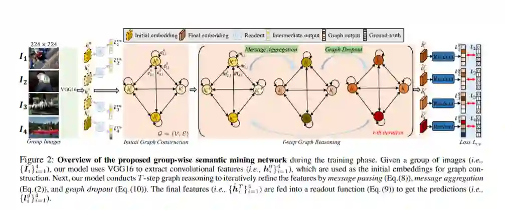 本工作探讨弱监督的语义分割方法,即致力于解决从图像级的训练标注得到像素级的模型预测的问题。我们创新地利用对图像分组并显式建立组内图像间的依赖关系的方法处理该弱监督语义分割问题。具体地,将图像视为节点,并利用互注意机制表征图像间的关系,我们利用一个图网络模型来建立和挖掘这种图像之间的语义关系。为了避免模型只响应一些简单的共性语义,我们进一步提出了应用于图模型的 dropout 机制,设法使其通过互注意机制关联出互补的响应区域,从而得到总体更加准确和完整的目标响应。整个网络可以端到端地完成训练,并在 Pascal VOC 2012 和 COCO 数据集上取得了当前最好的性能。
