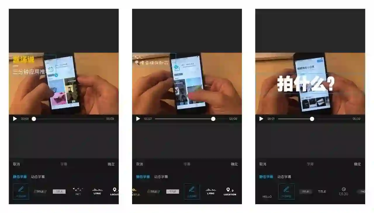 视频编辑器大部分操作都直观易懂,所以挑选了最重要的视频片段裁剪功能;拍摄的时候重点演示其处理不同素材的操作与效率。