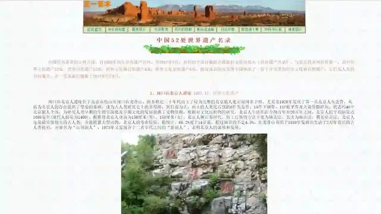 h4("中国作为著名的文明古国,自1985年加入世界遗产公约,至2017年7月,共有52个项目被联合国教科文组织列入《世界遗产名录》,与意大利并列世界第一。其中世界文化遗产32处,世界自然遗产12处,世界文化和自然遗产4处,世界文化景观遗产4处。源远流长的历史使中国继承了一份十分宝贵的世界文化和自然遗产,它们是人类的共同瑰宝。正一艺术最后编辑于2017年7月9日。"),width =12