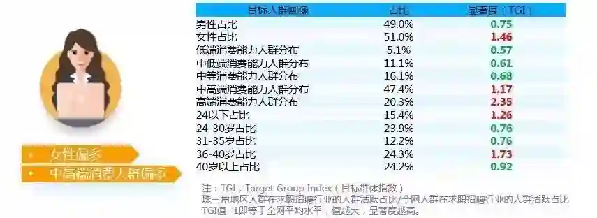 ▌珠三角求职招聘人群画像:中高端消费能力的女性,关注生活、购物有风格