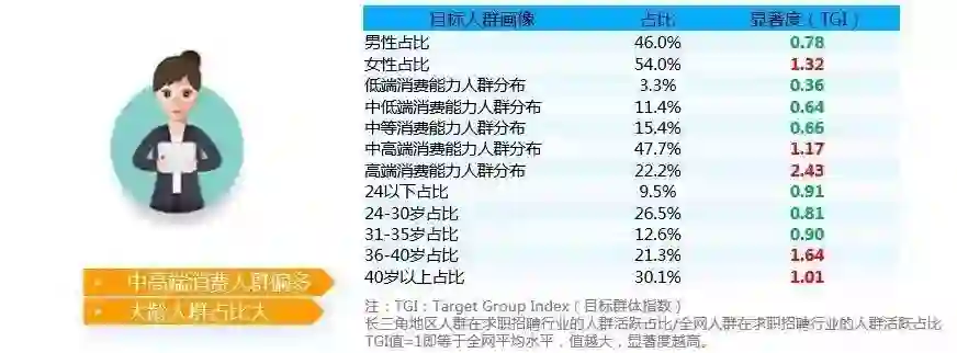 ▌长三角求职招聘人群画像:中高端消费能力的女性人群,喜欢走心的产品并关心新闻时事