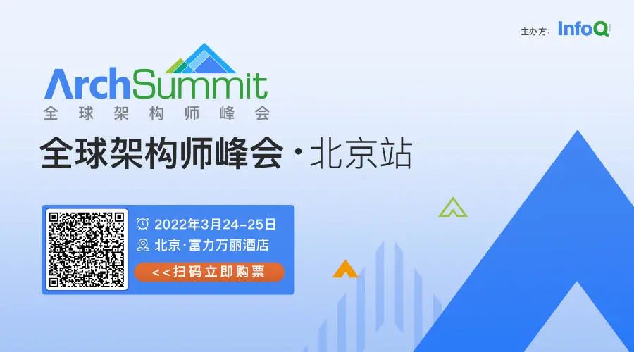 在 2022 年 3 月 24-25 日,ArchSummit 全球架构师峰会(北京站)即将落地北京,本次会议我们也配置了微服务治理之基础架构、微服务治理之业务架构、架构师成长、客户端架构设计、数据库与存储技术、云原生技术应用、质效度量体系和测试平台建设、低代码实践与应用、领域驱动设计方案落地、高并发架构设计等专题,届时欢迎你的参与。