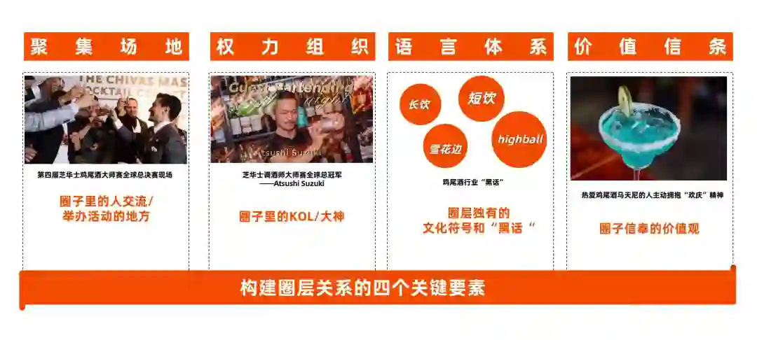这就是圈层关系构建的4个要素:聚集场地、权力组织、语言体系、价值信条。