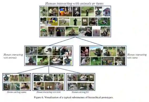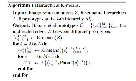 那么,如何在图像的表征空间中构建这样的树状结构呢?在缺少类别标签的无监督场景中,可以通过对图像特征聚类的方式获得图像的潜在语义类别。聚类中心则可以被认为是代表着某种语义类别的「原型向量」,基于自底向上的层级聚类思想, 在这些聚类中心的基础上进一步进行聚类则可以得到更高层级的潜在语义类别。在这一过程中, 语义类别的树状结构自然地得以维护:在某层聚类中为相同类别的图像,在上层中仍然保持为相同类别。