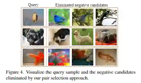 此前的方法 (如 NPID、MoCo 等) 将同一图像经过不同随机数据增强后的版本作为正样本对,而将不同图像作为负样本对。这样的方式存在一个关键的问题:所选择的负样本对可能属于相同类别,从而使得相同类别的样本在表征空间中互相远离,这将在某种程度上破坏模型所学习到的表征有效性。