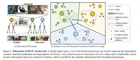 该工作的方法论框架包含两个重要的模块: 一个是层级语义结构的构建与维护, 另一个是基于层级语义结构的选择性对比学习。