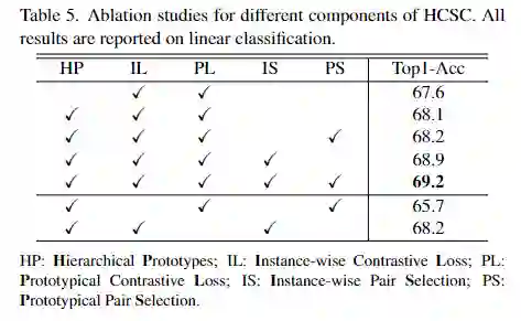 1. 层级原型、实例样本选择、原型样本选择模块的有效性都得到了验证,可以分别在 baseline (67.6)的基础上有效涨点 (67.6 => 68.9 => 69.2),其中效果最明显的是实例样本选择模块。