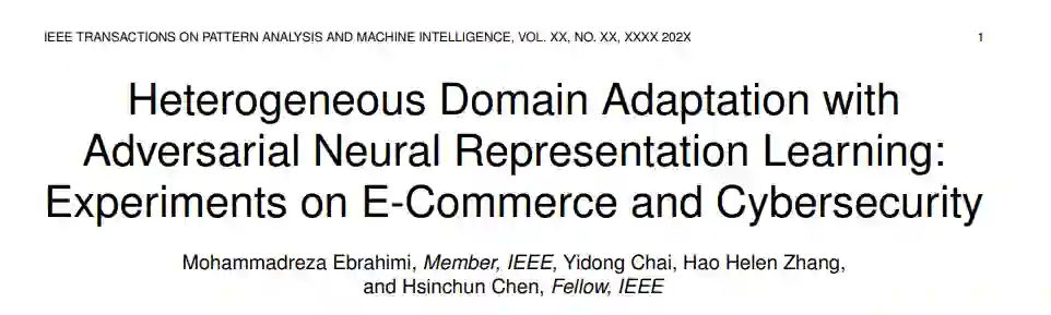 便捷下载,请关注专知公众号(点击上方蓝色专知关注) 后台回复“HAND” 就可以获取《【TPAMI2022】基于对抗性神经表示学习的异构域适应:电子商务与网络安全实验》专知下载链接