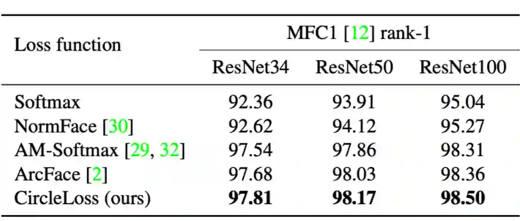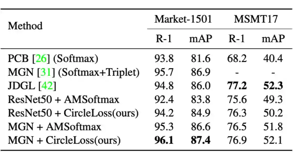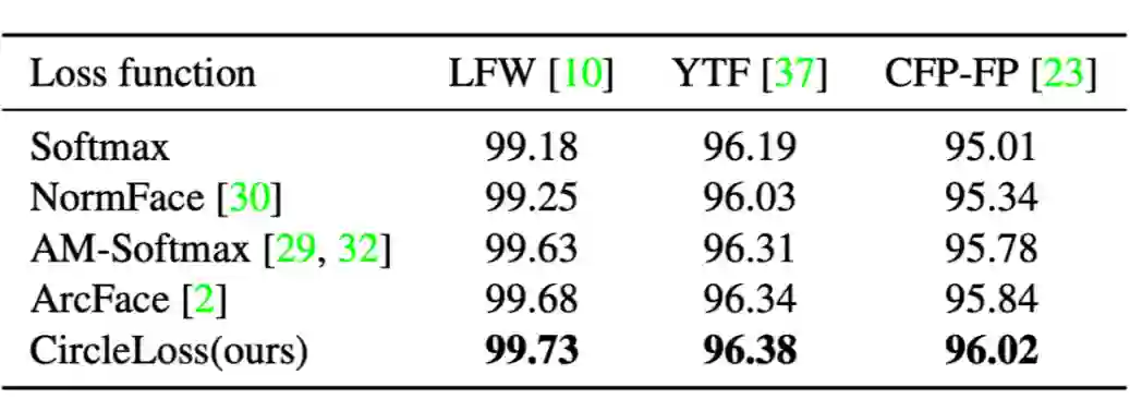 在人脸识别、行人再识别、细粒度的图像检索等多种深度特征学习任务上,Circle Loss 都取得了极具竞争力的性能。