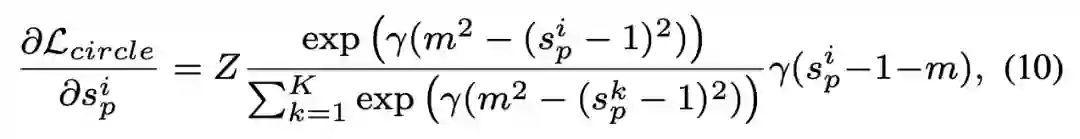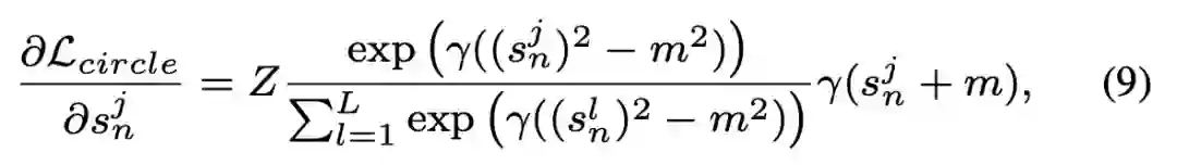 基于等式 (8) 定义的决策边界,可对 Circle Loss 进行另外一番解读。其目标是优化 和 。参数 m 控制着决策边界的半径,并可被视为一个松弛因子。换句话说,Circle Loss 期望 且 。因此,超参数仅有 2 个,即扩展因子 γ 和松弛因子 m。4.3 优势Circle Loss 在 和 上的梯度分别为: