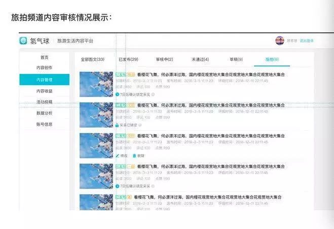 而在2019年1月22日携程攻略社区发布的微博“携程签约旅行家招募7旅拍奖励计划”一文,在旅拍频道内容审核情况展示的截图中,我们可以看到显示的依然是氢气球的后台,携程攻略社区还在文末专门解释了携程氢气球用户信息平台与携程旅拍同属于携程体系。