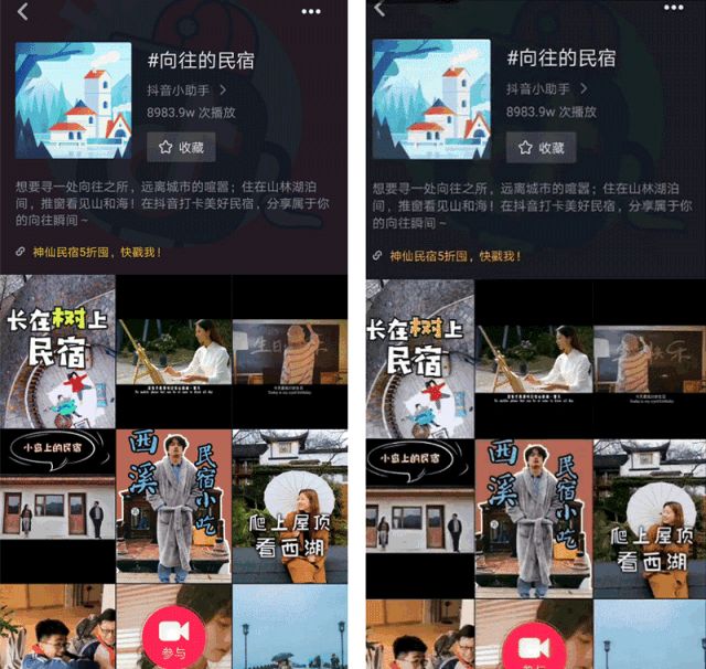 不久前的2月28日,抖音联合订单来了开启的「抖音民宿季」活动,集结10家民宿界重量IP,邀请24位达人与视频平台拍摄民宿视频,仅3天,销售额已突破100w,曝光总量突破4000w+,“向往的民宿”专属话题量接近破亿。