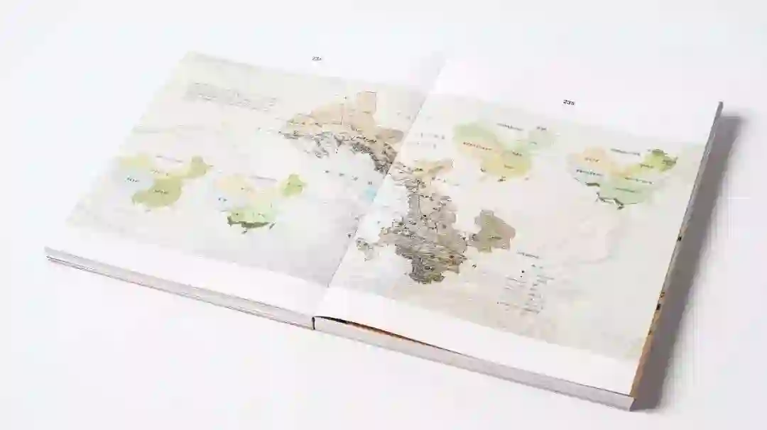 目录特殊的设计和装帧,灵感就源自中国地势的三级阶梯,这16篇文章均匀分布在这三级的每个角落。