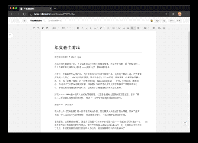 具体到产品上,石墨提供的编辑器以及排版样式都较为现代,更符合互联网时代内容创作者的喜好;完善的表格功能,也进一步体现了他们作为后来者的用心之处。