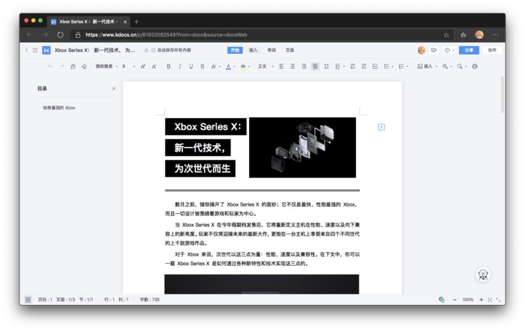 而金山文档用起来,是三家当中最接近 Office 套件的一款;不仅编辑功能和使用体验上如此,其对于 Office 文档的兼容性之佳,也足以成为很多人使用它的理由。