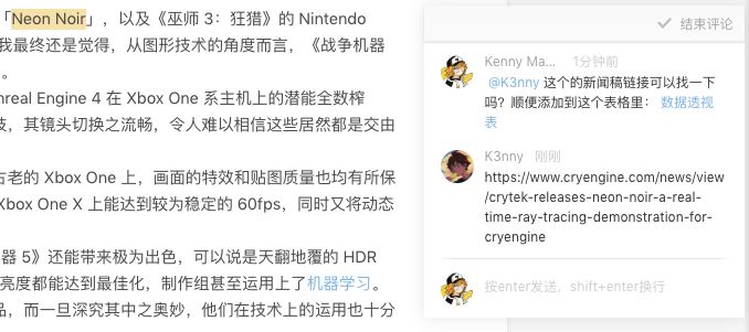 腾讯也支持评论功能,稍有不同的是,腾讯可以将评论内容嵌入文本中;不过这样的操作会影响文本本身的换行处理,有可能破坏最终的排版效果,实用性上个人认为一般。