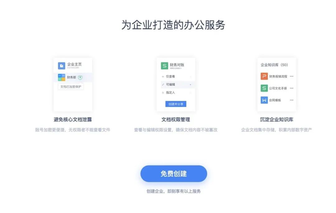 类似于「团队空间」,金山文档为企业和团队提供了进阶版的服务;在左侧边栏找到「开启团队协作办公」的区域,就能直接将账号升级为企业用户。