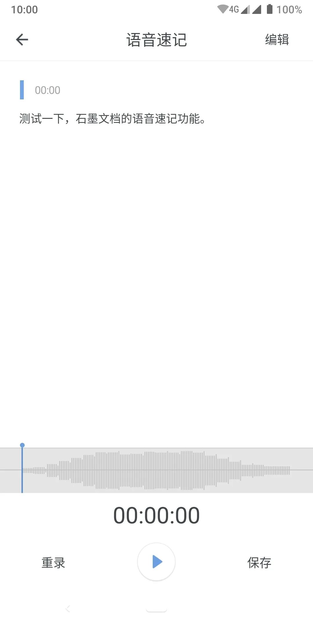 在 App 上,石墨提供了一个名为「语音速记」的特性,简单地说,就是一个自带语音识别的录音机;录音完毕后,音频文件会保存在本地,而识别的文字会自动保存在石墨上。