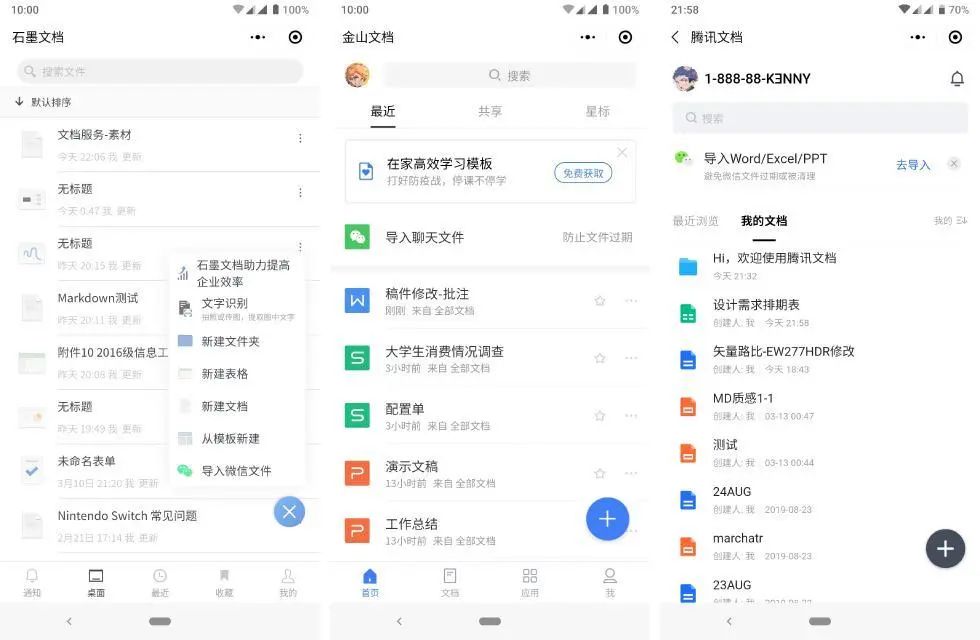 有趣的是,它们正好代表了截然不同的三股势力:石墨初出茅庐,是位意气风发的新人;金山则在办公软件领域摸爬滚打三十余年,有着深厚的技术底蕴。至于作为互联网巨头的腾讯,则是切入了一个新的领域,试图借助自己的影响力和用户基数拿下一城。