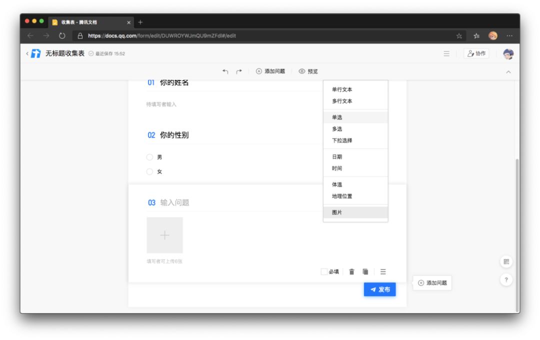 其实腾讯也提供了这样的「打卡」表单,但在网页端居然无法生成,只有打开小程序或者 App,才能找到这一选项。