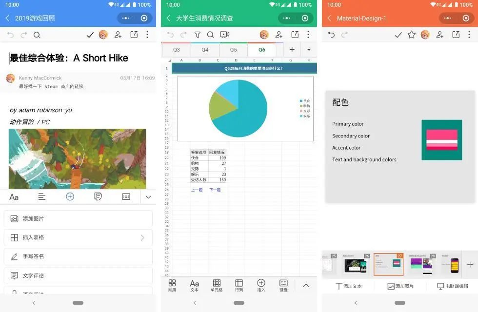 对于讲究便捷的移动端而言,即扫即用的「小程序」,着实改变了很多人的使用习惯;这三家在线文档,都支持通过微信小程序分享文件、表单等内容,以及邀请他人参与协作。而它们的小程序本身,也能被视作一个完整的「App」,可以在上面浏览、新建、阅读,甚至编辑文件。