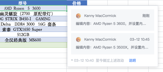 在表格的协作功能和历史记录上,金山的表现是最好的,像是它可以查看每一个单元格的历史改动;石墨也支持这项功能,但 —— 仅限企业版;腾讯则不支持这项功能。