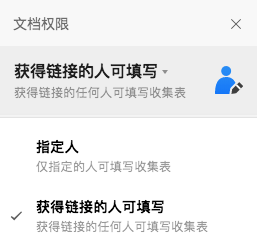 除了是否允许多次提交之外,腾讯几乎没有提供任何可以设置的权限。不过,它可以指定部分人员填写表单,算是一种弥补吧。