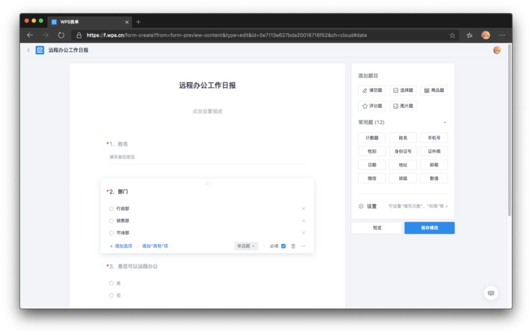 表单功能算是表格的细分产物,你可以粗略地把它理解成在线问卷,只不过它的用处远不止调查一种。