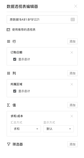 不过,如果导入的是 Excel 创建的数据透视表,那么石墨似乎会在显示上出现一些问题,无法正常求出所需要的值。